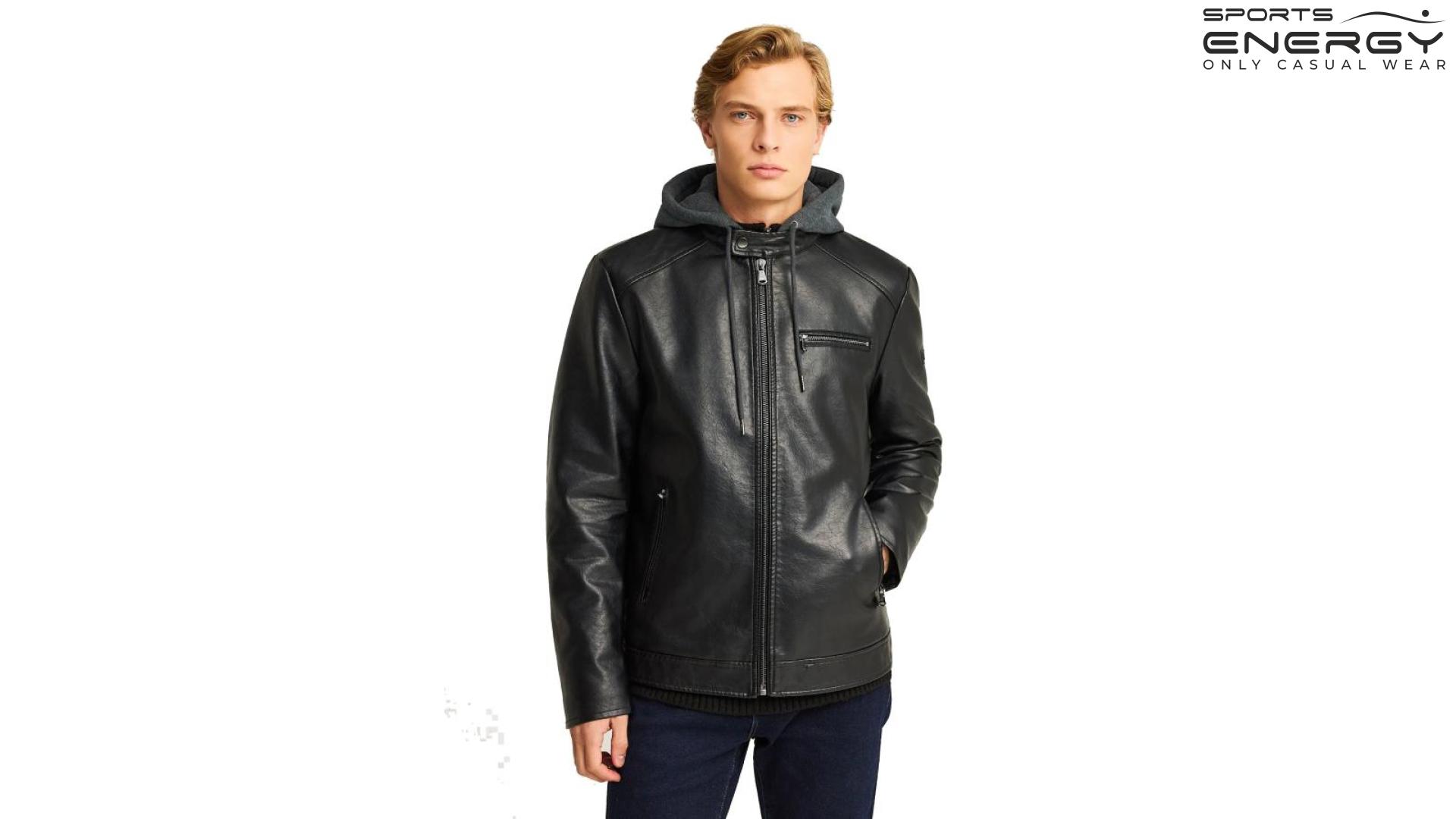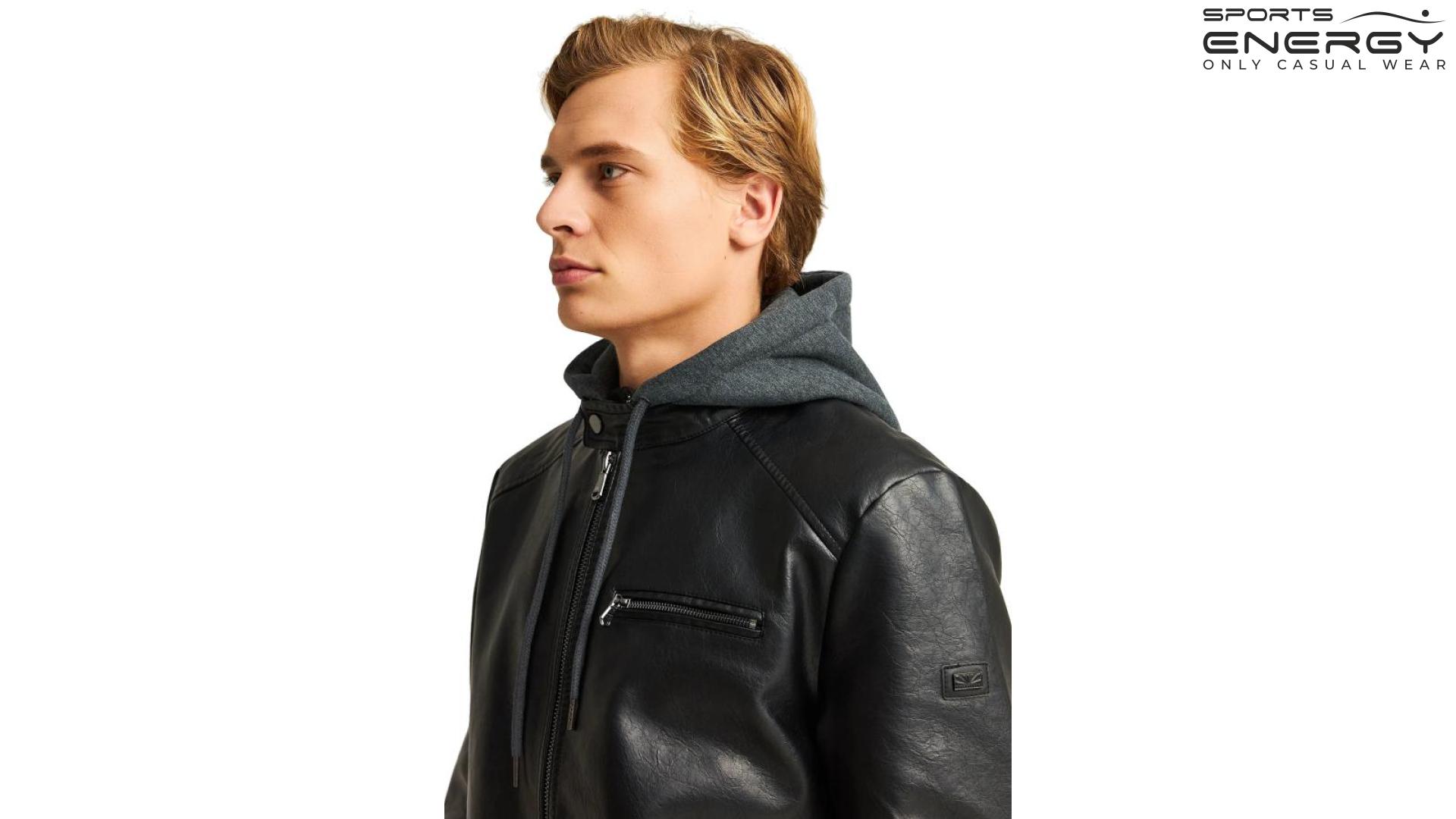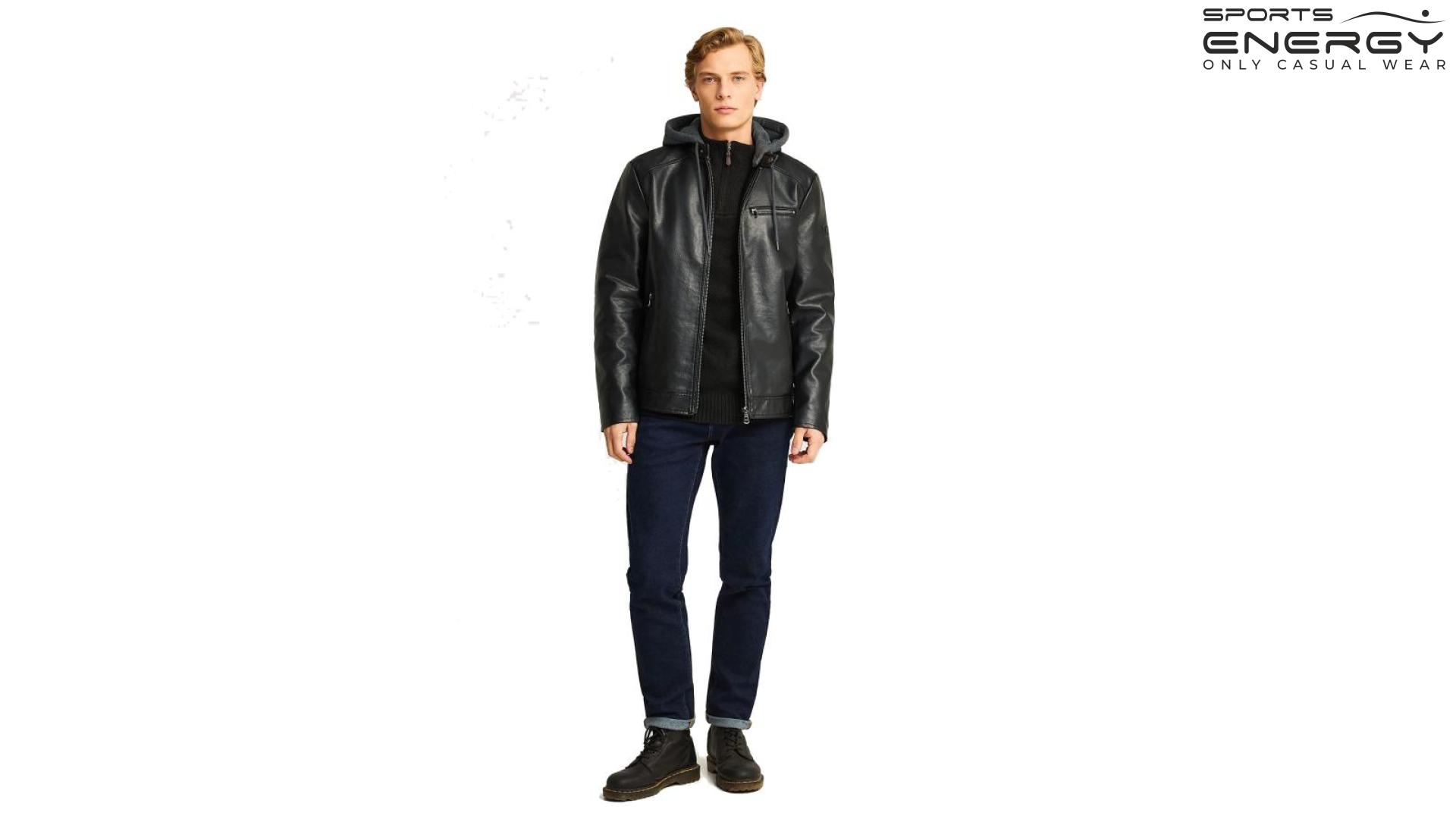 Κατασκευασμένο από συνθετικό δέρμα και ιδανικό για φθινόπωρο/χειμώνα, αυτό το σκούρο μονόχρωμο biker μπουφάν με κανονική γραμμή διαθέτει ευθεία κοπή και ψηλό λαιμό με κουκούλα για ζεστασιά και άνεση. Χωρίς γιακά και με τσέπες με φερμουάρ, προσφέρει μοντέρνο, μίνιμαλ στυλ χωρίς περιττές λεπτομέρειες στην πλάτη. Ιδανικό για καθημερινές εμφανίσεις με edge χαρακτήρα – συνδυάστε με τζιν και μπότες για ολοκληρωμένο urban look.