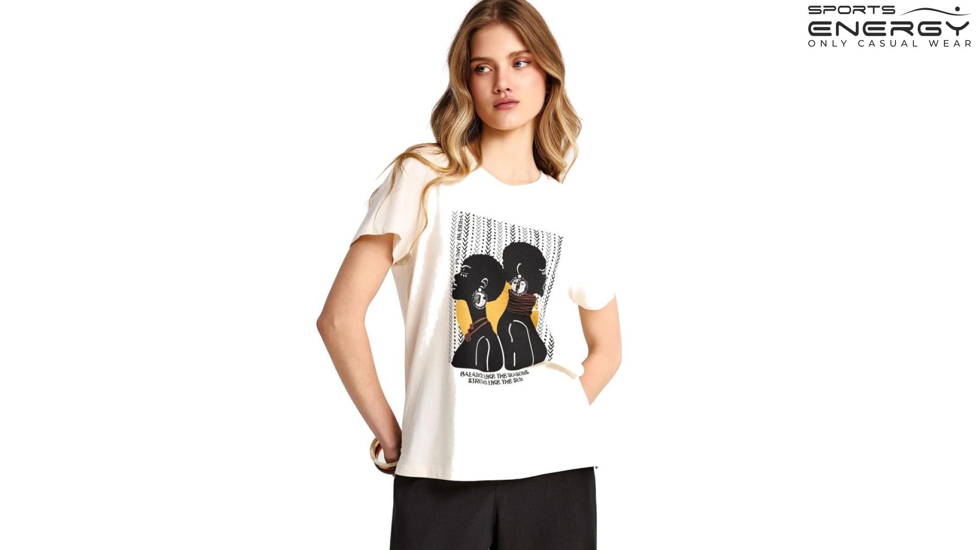 Γυναικείο t-shirt με τύπωμα από 100% οργανικό βαμβάκι για απόλυτη άνεση και απαλή αίσθηση. Αυτή η μπλούζα με τη regular γραμμή, είναι ιδανική για κάθε μέρα και υπόσχεται να αναδείξει το στυλ σου με τον πιο απλό τρόπο. Ένα σχέδιο που ξεχωρίζει, σε συνδυασμό με την άριστη ποιότητα, συνθέτουν ένα must-have κομμάτι για την γκαρνταρόμπα σου από τη Funky Buddha. Συνδύασέ το με τζιν και sneakers για ένα casual chic look.